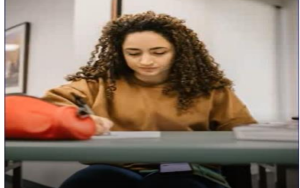 DescriptionIn the following picture there is a girl with curved hair wearing grew shirt and blue paint. The girls is taking exam and during paper she is taking help from mobile. In other words, she is cheating which is not good for an student.