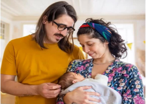 The young couple feel very happy on the birth of their child because the birth of their baby will make a significant change in their lives and they will fulfill their responsibilities as a parent.